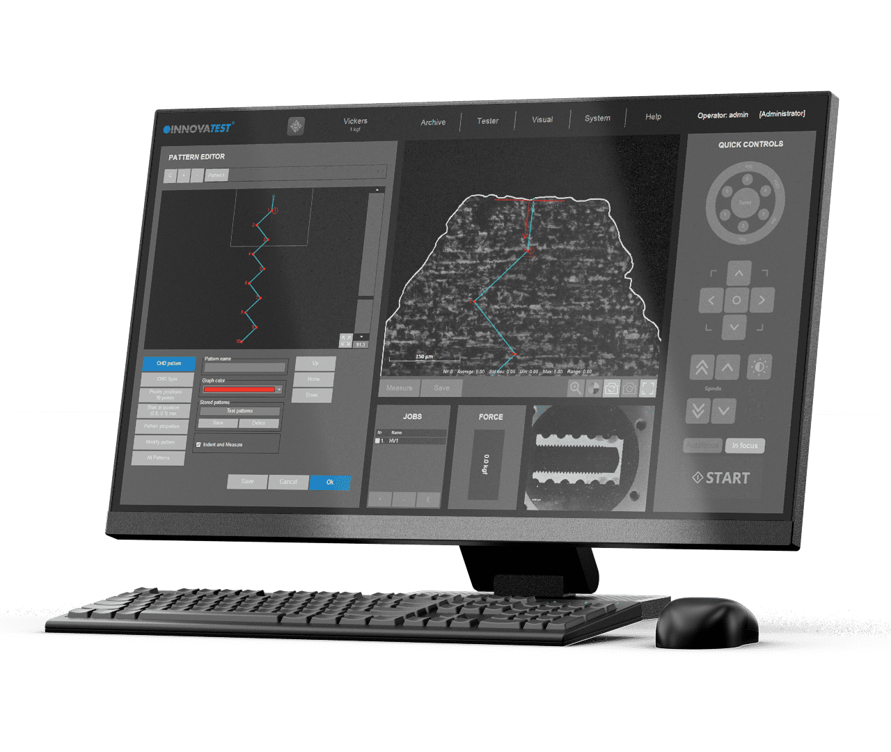 IMPRESSIONS™ ソフトウェアは、イノバテストのエンジニアによって設計および構築され、硬さ試験分野の多くの業界で複雑な硬さ試験を簡素化します。当社のGUI (グラフィカル・ユーザー・インタフェース)には、あらかじめ用意された試験アプリケーション、高度なワークフロー制御、強化されたレポート機能が含まれており、非常に簡単に使用する事ができます。